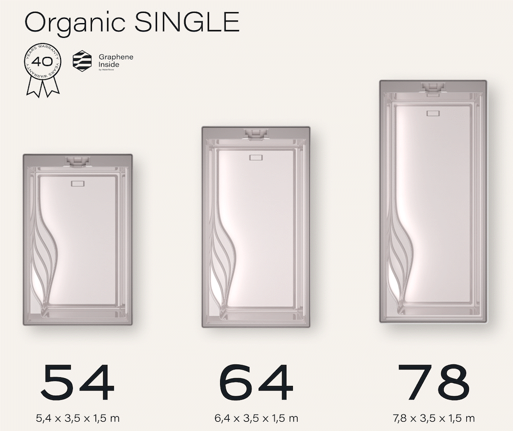 Der ORGANIC Single bietet Stufen nur auf der linken Siete - für klare Linien und maximalen Freiraum im Schwimmbereich. Ideal für kleinere Gärten, kompakte Räume oder architektonisch anspruchsvolle Projekte.