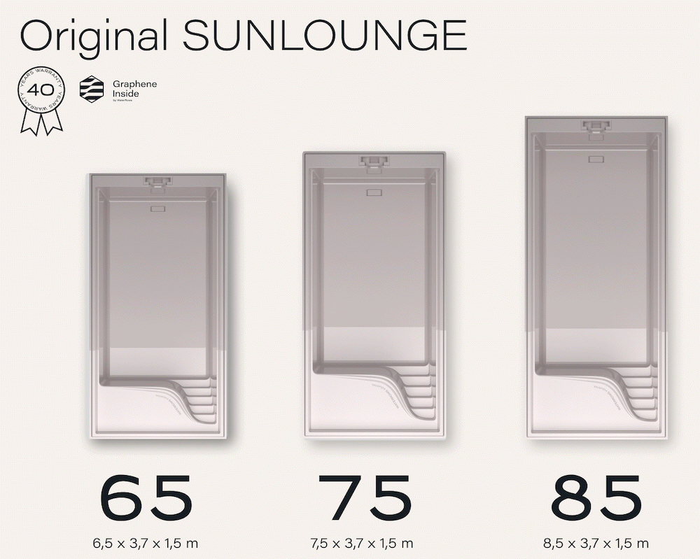 Mit einer erweiterten Sonnenliege und sanfter Wassertiefe - ideal zum Entspannen, Ausruhen oder für sicheres Spielen der Kinder. Mehr als nur Funktion - SUNLOUNGE ist ein Raum für stille Momente, sonnige Pausen und das einfache Dasein. Modell mit treppe auf der rechten Seite.